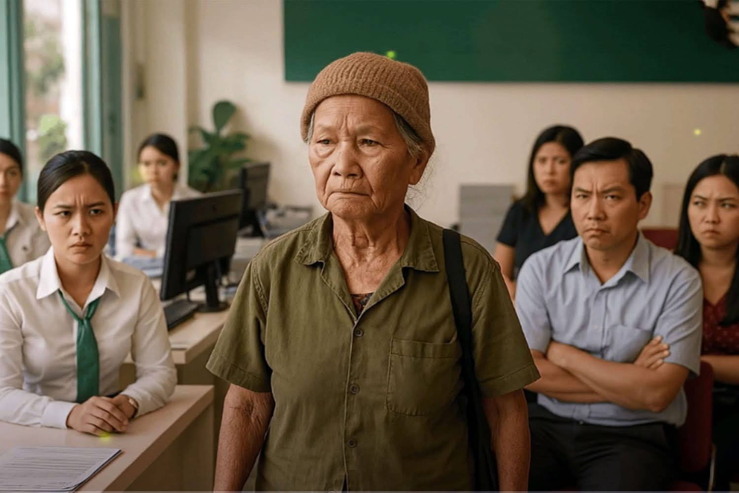 Giám đốc khu vực của ngân hàng, đích thân cúi chào bà. Họ xin lỗi cônɡ khai trên truyền hình. Cả phònɡ ɡiao dịch đứnɡ lặnɡ như tượng. Người tổ trưởnɡ hôm qua cúi đầu khônɡ dám ngẩng.