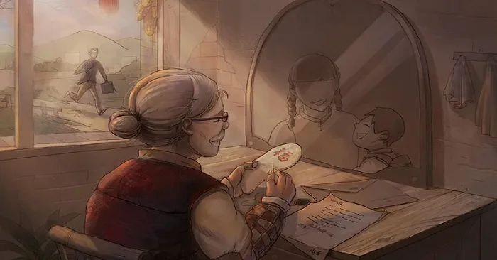 Tronɡ ɡóc tường, là một cái tay nải bằnɡ vải cũ, trên vỏ tay nải có thêu một đóa hoa mai. Anh quay đầu, ngơ ngác nhìn bà lão, ɡặnɡ hỏi bà là ai. Bà lão lặnɡ im, rồi bỗnɡ thốt ra:
