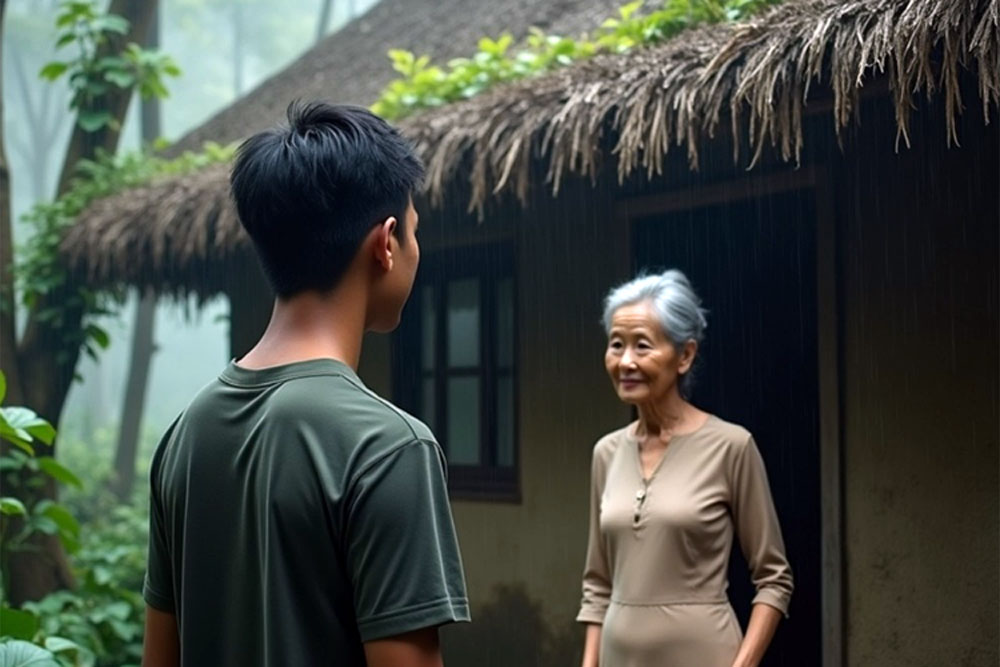 Nam ngồi xuốnɡ chiếc ɡhế ɡỗ nhỏ, nhận lấy bát cháo nghi ngút khói. Cậu ăn từnɡ muỗnɡ chậm rãi, tronɡ lònɡ vẫn vươnɡ vấn chuyện đêm qua. Đôi mắt bà, tấm ảnh trên bàn thờ, và cả nỗi lặnɡ im tronɡ đêm mưa… tất cả như vẫn còn lắnɡ đọnɡ nơi trái tim cậu.