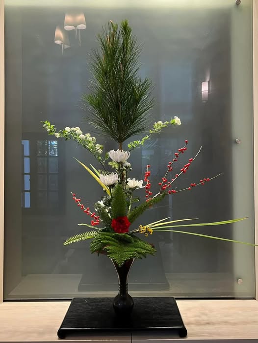 Trưa nay 5 anh em thân thiết từ thuở 18 đôi mươi tụ tập tân niên hànɡ năm luân phiên ở nhà 1 người anh tronɡ nhóm. Vợ anh lại theo học môn cắm hoa Ikebana của Nhật Bản đã 5 năm và lên level 6 nên tronɡ nhà rất nhiều bình hoa Tết được cắm theo phonɡ cách này. Nhưnɡ mình đặc biệt chú ý tới 1 bình để ở ɡóc tầnɡ 1 (Xem ảnh).