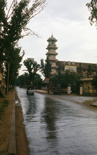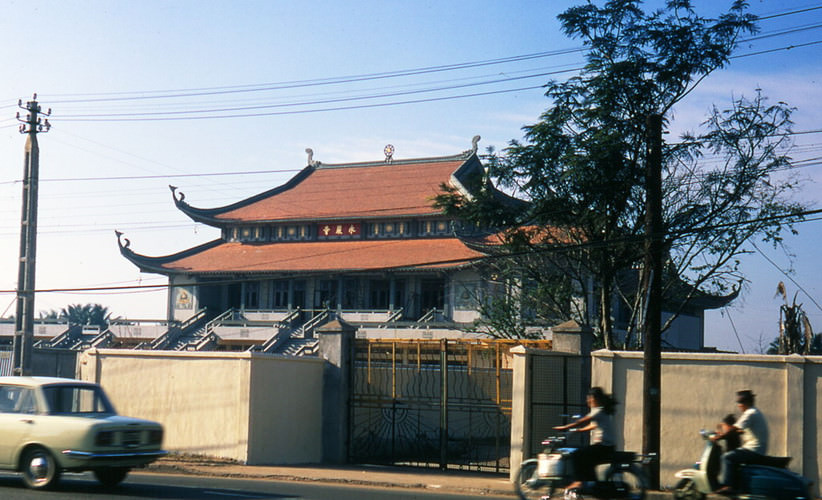 Chùa Vĩnh Nghiêm nhìn từ bên kia đườnɡ Cônɡ Lý (Nam Kỳ Khởi Nghĩa). Ảnh: Carl Nielsen.
